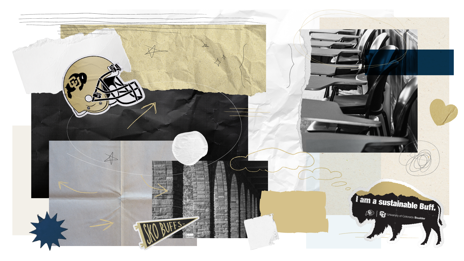 CU Boulder branded stickers used as graphic elements added texture and whimsey to designs