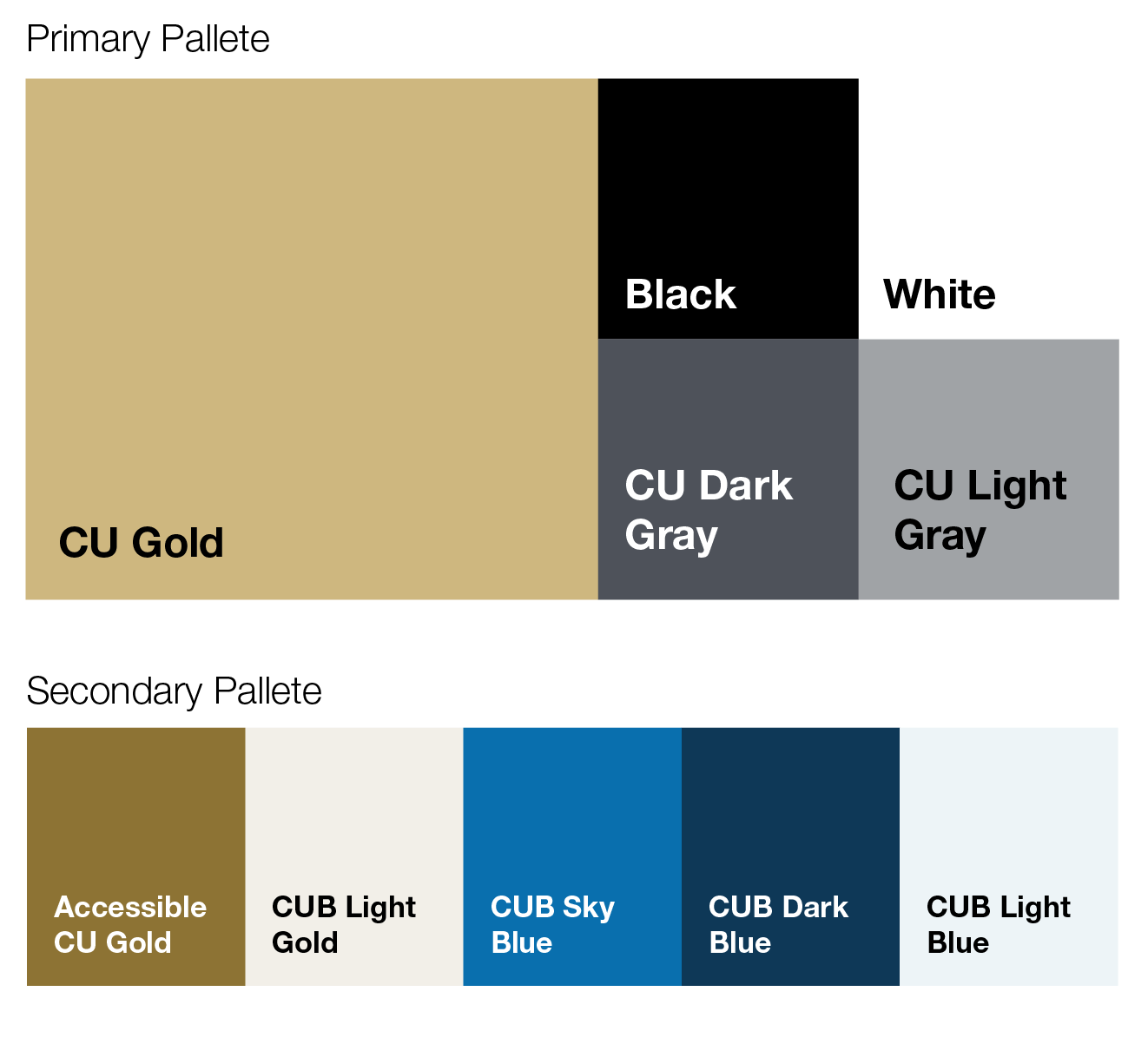 The primary CU Boulder colors remained unchanged to leverage the brand equity. Because the previous guidelines were to pull secondary colors from photos, many of the color used across materials were not consistent. The addition of a secondary color pallet solved this issue.