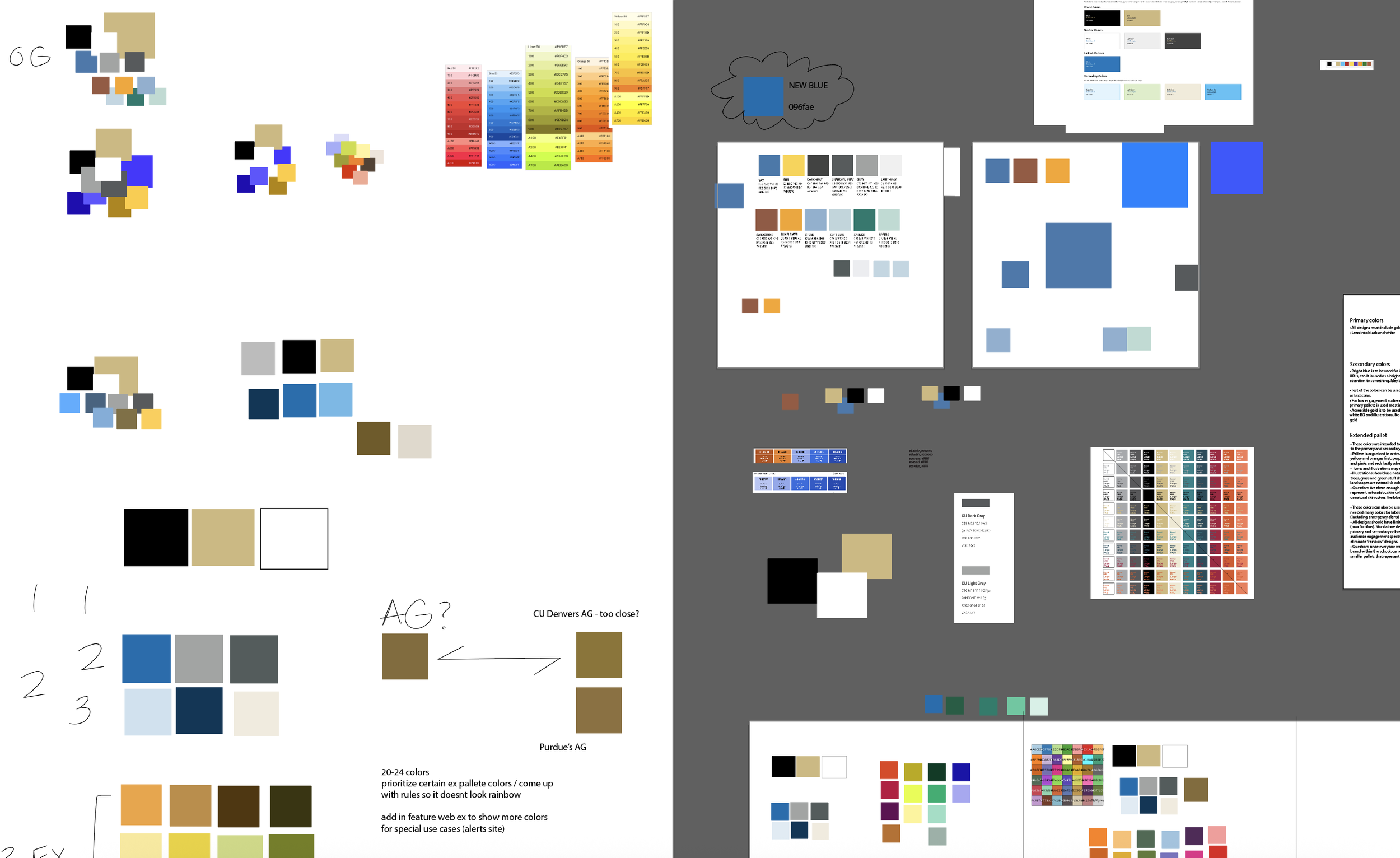 Once specific recommendations for improvement were determined, we could begin the experimentation phase. For example, a secondary color pallete was found as a solution, but what would the colors be?